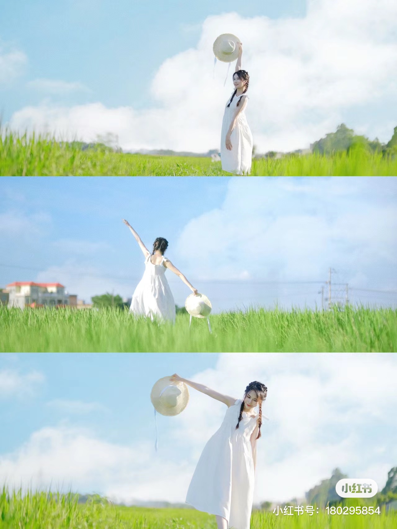 (2)大风车,啊,这个很简单,但前提是能有一个风车,感觉白的会不错,然后就是手拿着,举起来,自己吹一下这种吧,收拿着转圈,来让风车转起来,在田埂上跑起来……